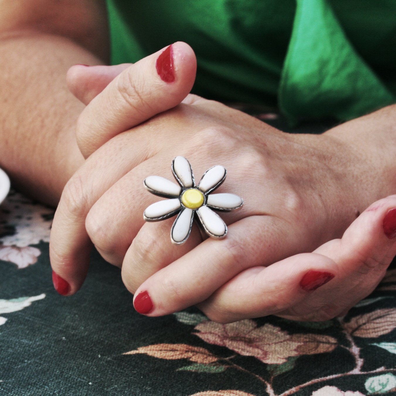 Les dones a qui ens agrada portar anells coneixem molt bé l’alegria que suposa per a la nostra ànima resseguir amb la mirada el gest de les nostres mans guarnides. La col·lecció «Una flor a la mà!» vol afegir-hi, a més, l’encanteri sublim d’una flor, que ofereix bellesa sense condicions.